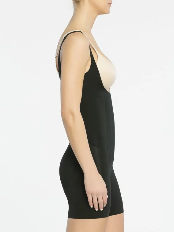 Mit diesem Modell aus der „Oncore“ Serie von SPANX kommt ein Shapesuit daher, der sich fast allen Problemzonen der Frau annimmt. Das dünne und leichte Material ist besonders stabil und wird zusätzlich am Bauch mit einer verstärkten Shape-Platte unterstützt. Dank geklebter Abschlüsse werden auch unangenehme Nahtstellen verhindert. Das Beste daran: Dank dem tiefen Ausschnitt kann der ganz persönliche Lieblings-BH dazu kombiniert werden.